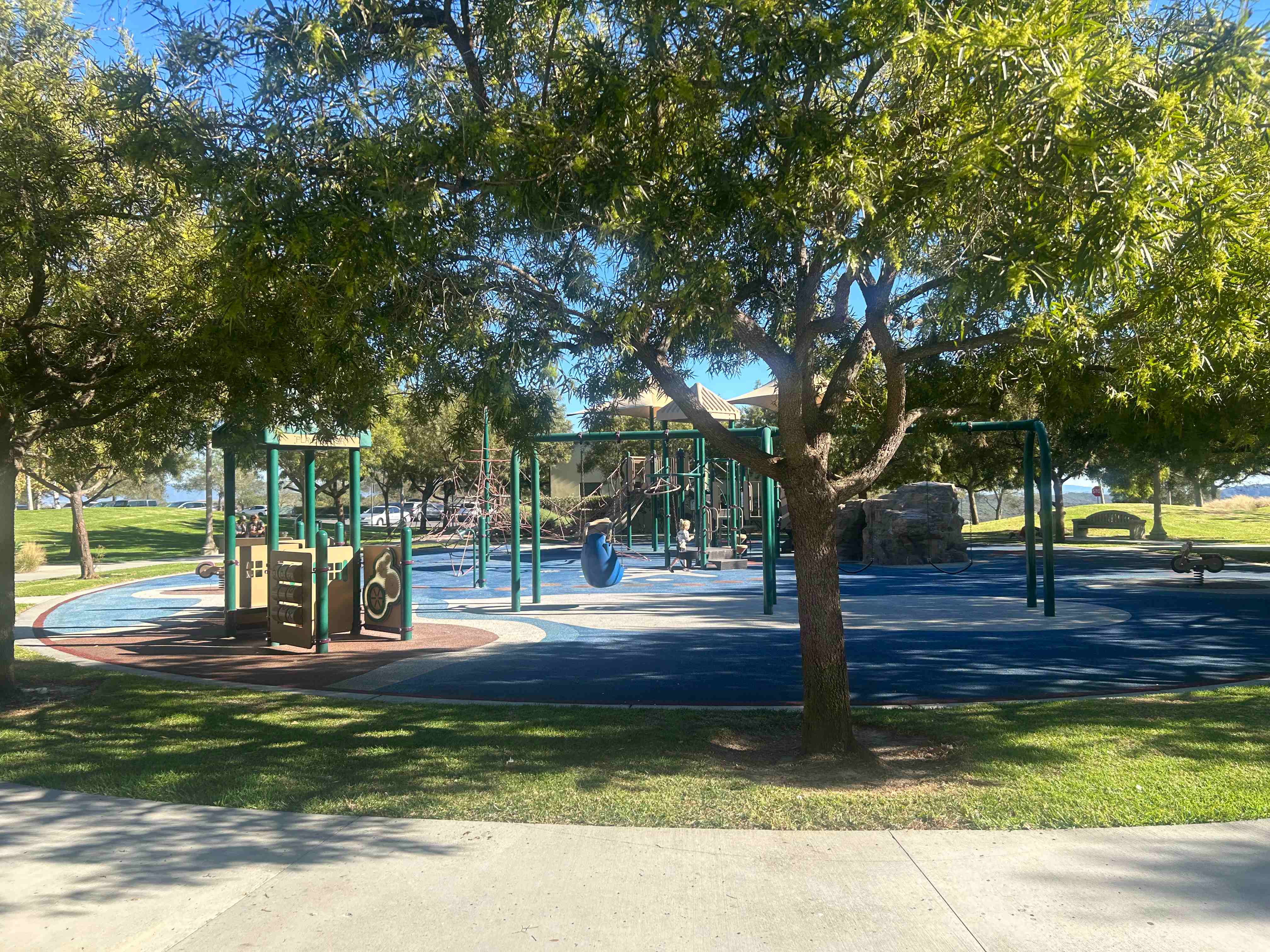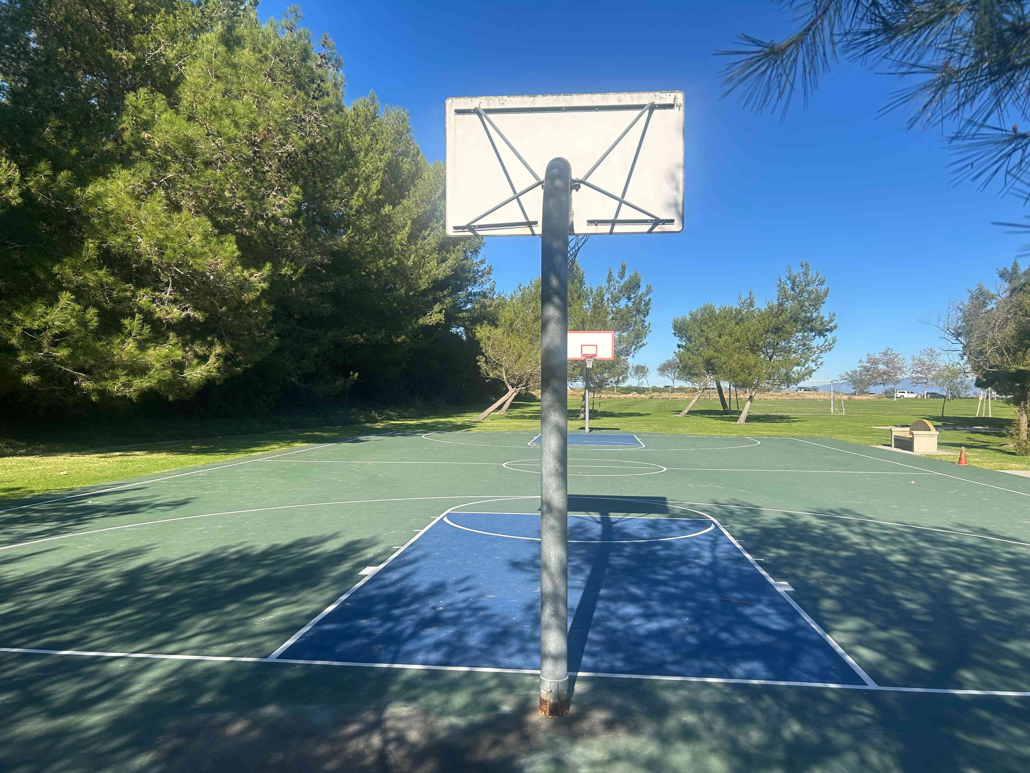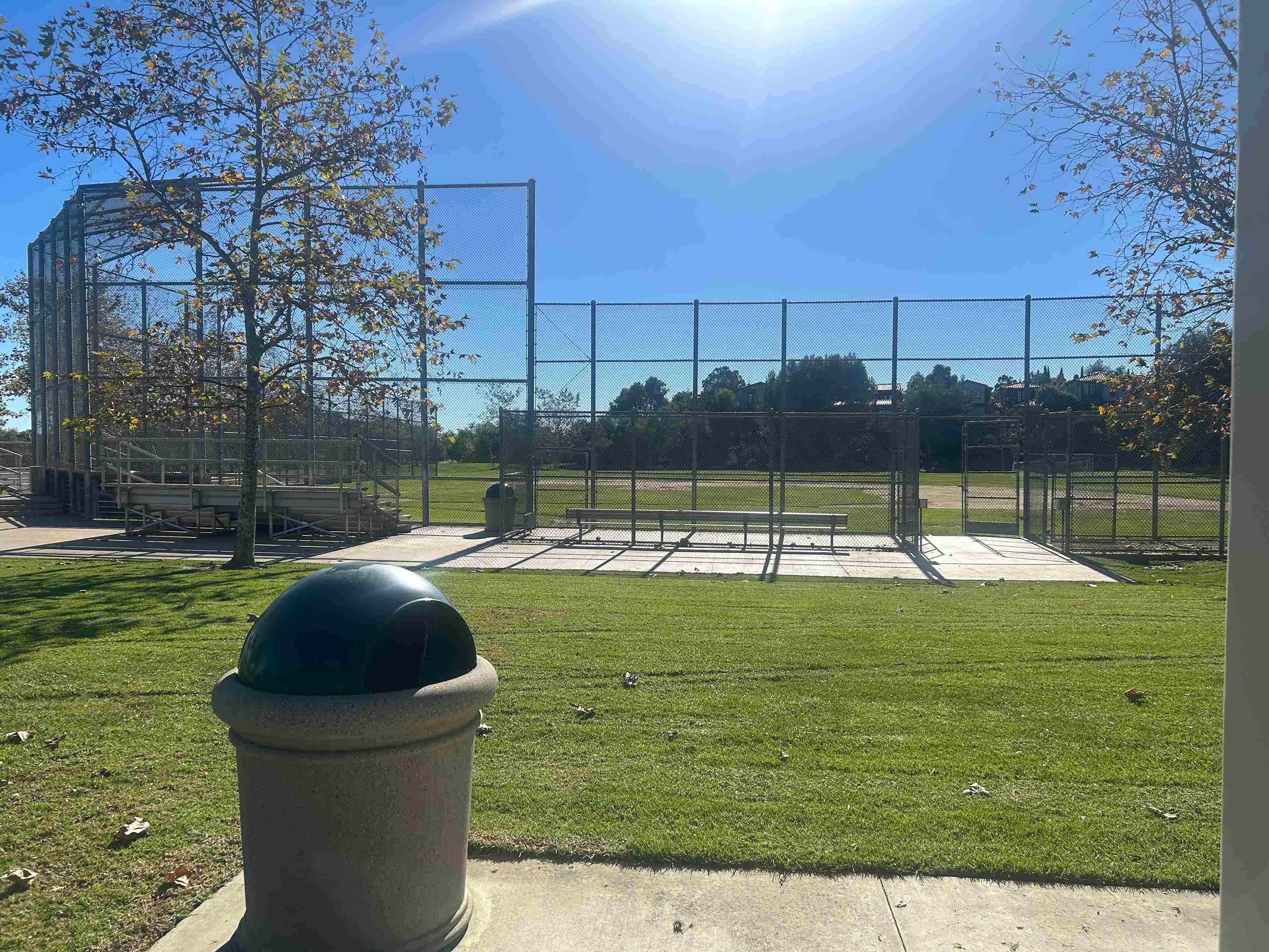 Coastal Peak Park is in the Newport Coast community of Newport Beach, CA. It sits on a hill that’s shared with Crystal Cove State Park’s north end. A long uphill drive is required to get there. The state park trails are on one side of the street and Coastal Peak Park is on the other. Street parking is limited on the weekend due to hikers and mountain bikers also parking there. Spots should still be available in the park’s designated parking lot though. There are no views of the ocean or skyline, but the higher altitude of the park is very noticeable, especially in the large lawn area. Amenities include 2 picnic shelters (with 4 tables in each), a playground, 2 baseball fields, batting cages, a small fitness area, a soccer field (lawn area), a basketball court, and bathrooms next to the parking lot.