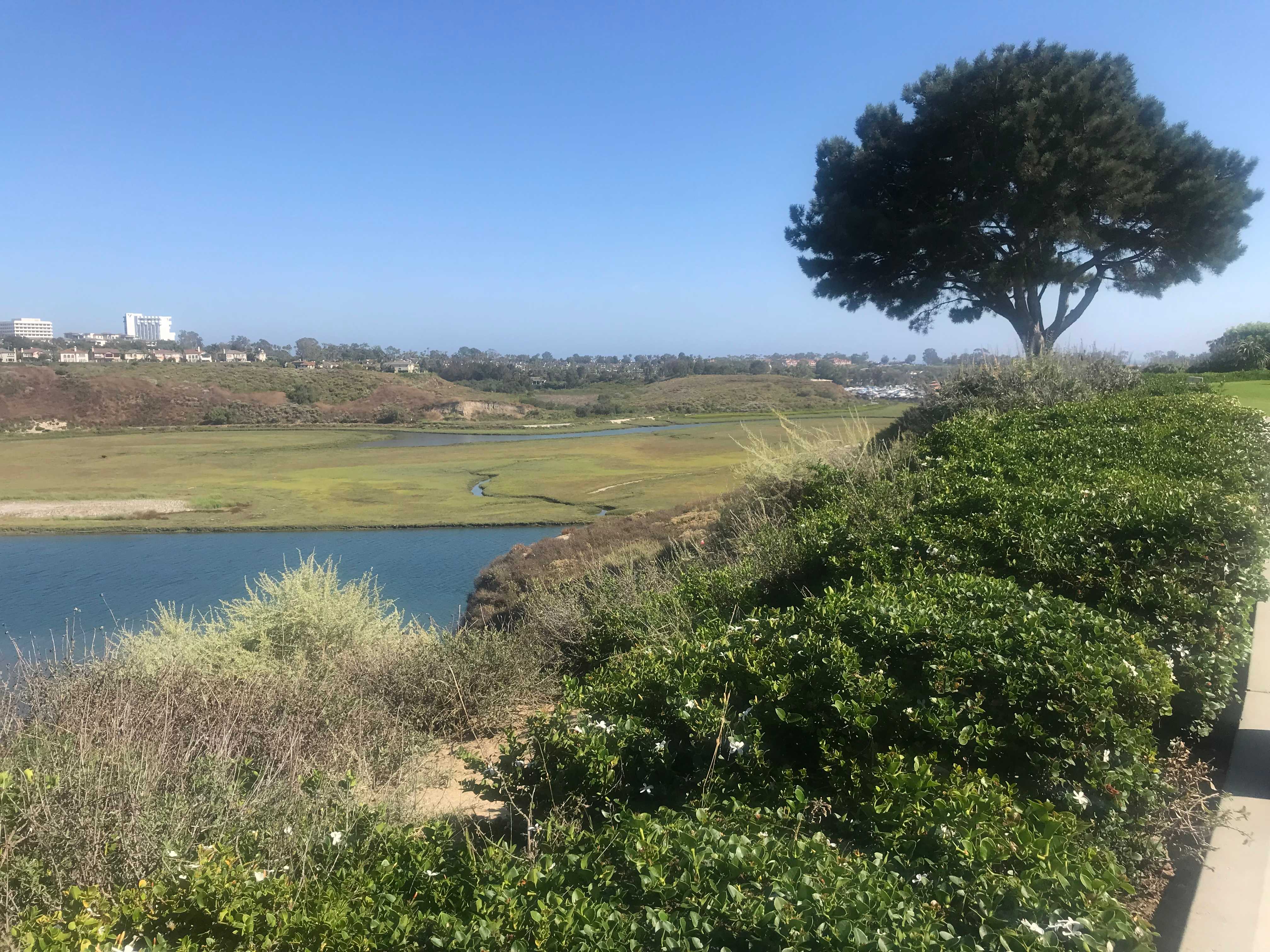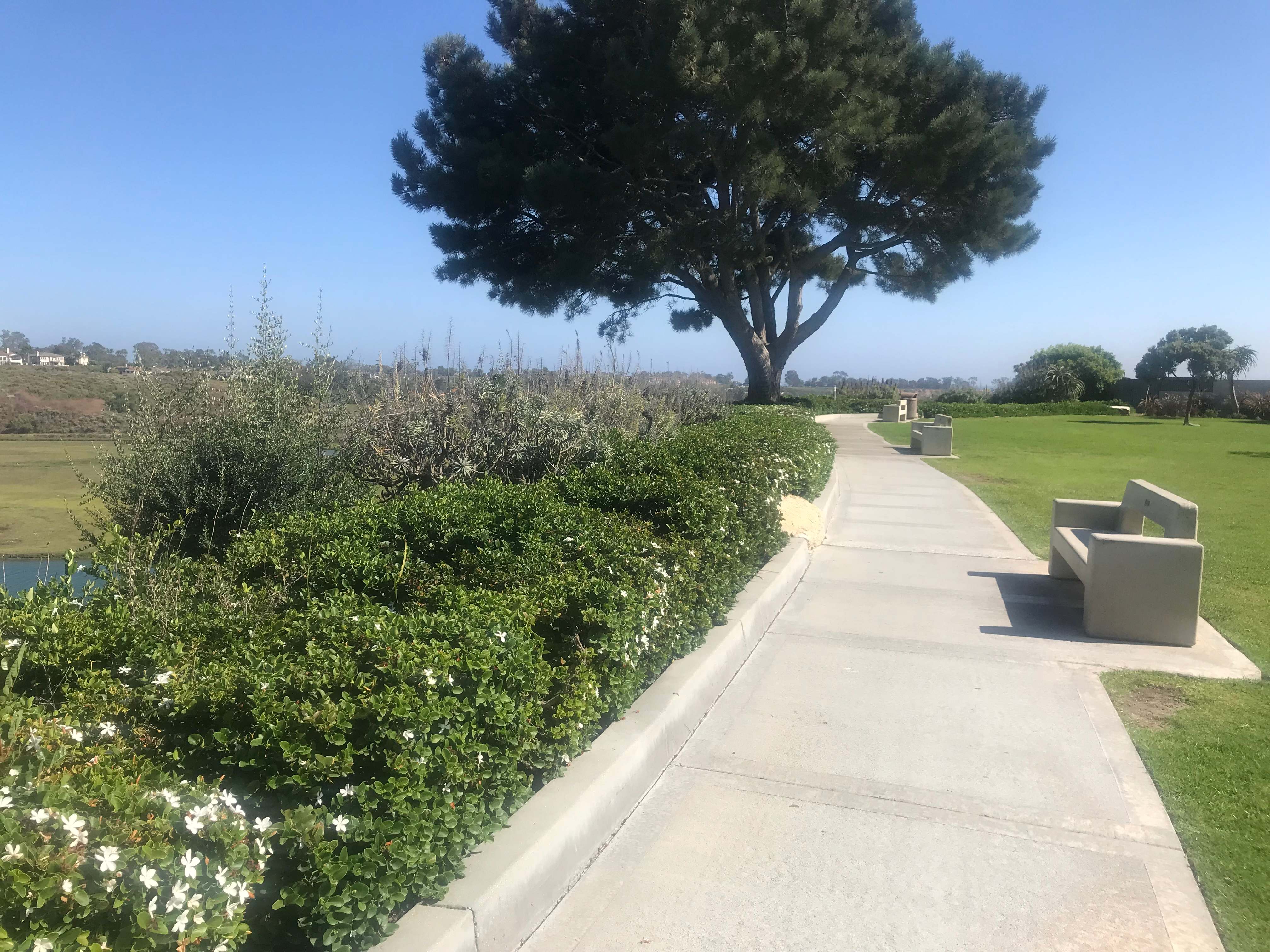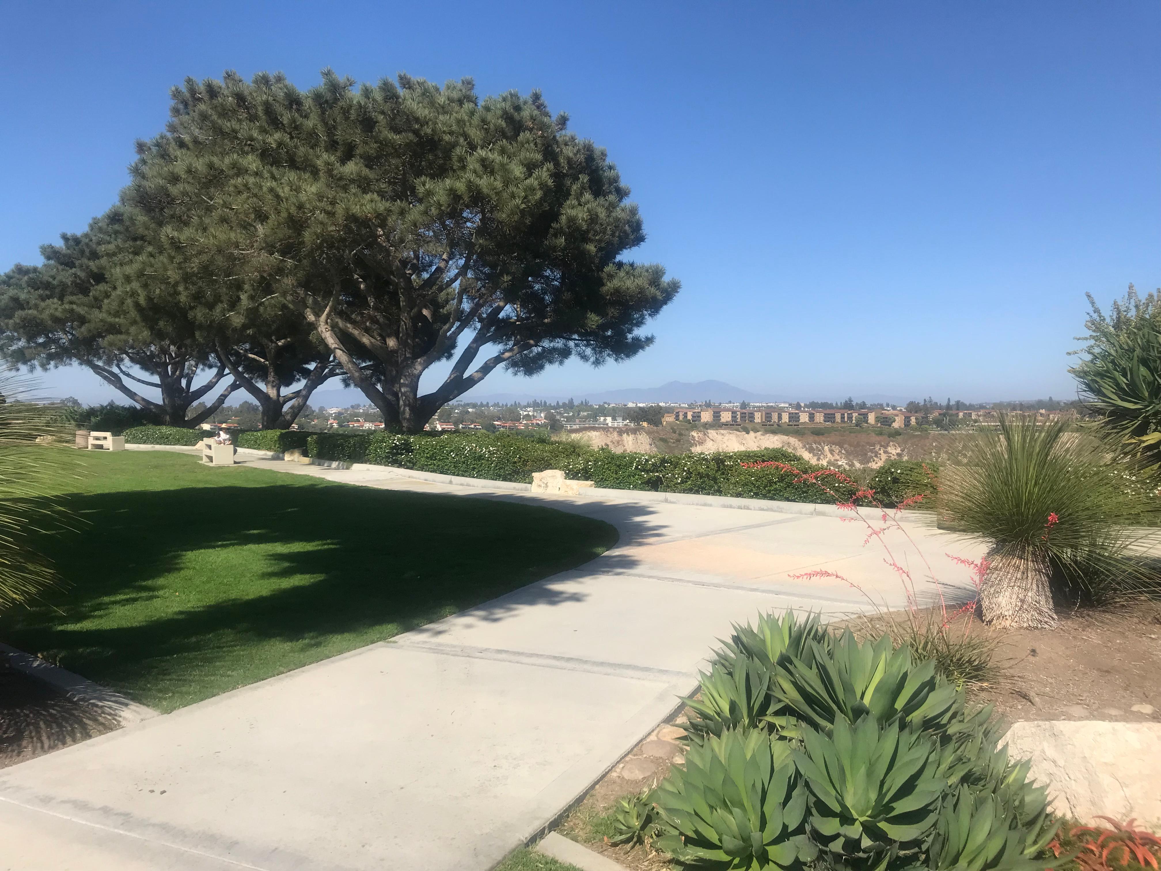 A nice greenbelt area with some benches that overlook Newport Beach’s Upper Back Bay. Good for watching sunsets or playing with pets on the manicured lawn.
