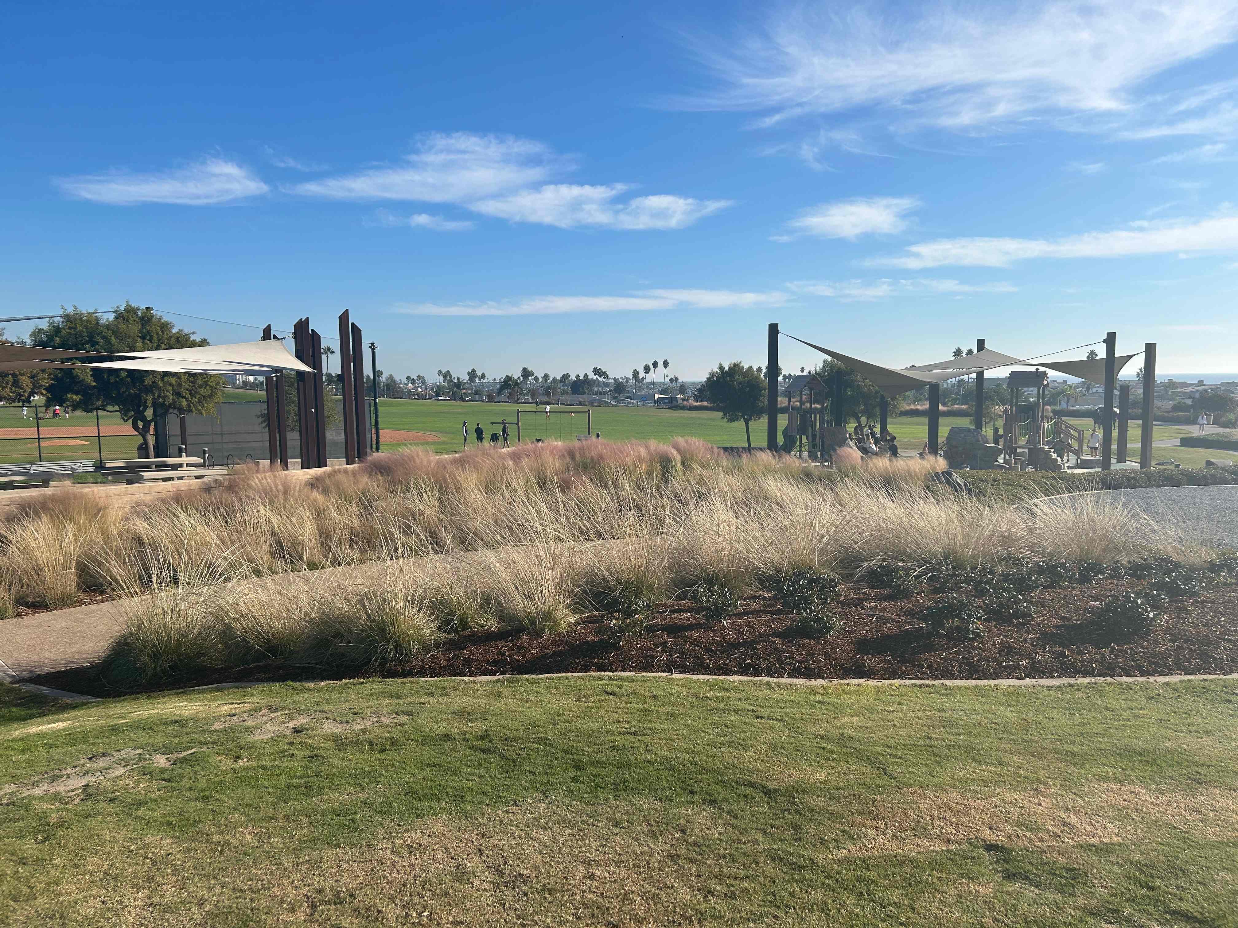 This scenically located park has undergone many enhancements within the last five to ten years as far as new landscaping, a new playground, and new parking. The new parking specifically was a project that began several years ago and is now complete as of 2024. The new dedicated lot is on the other side of the street and requires a fee, to be paid at the kiosk. A bridge must be taken that crosses over the street into the park. The park has a distant ocean view from certain vantage points and bathrooms are onsite.